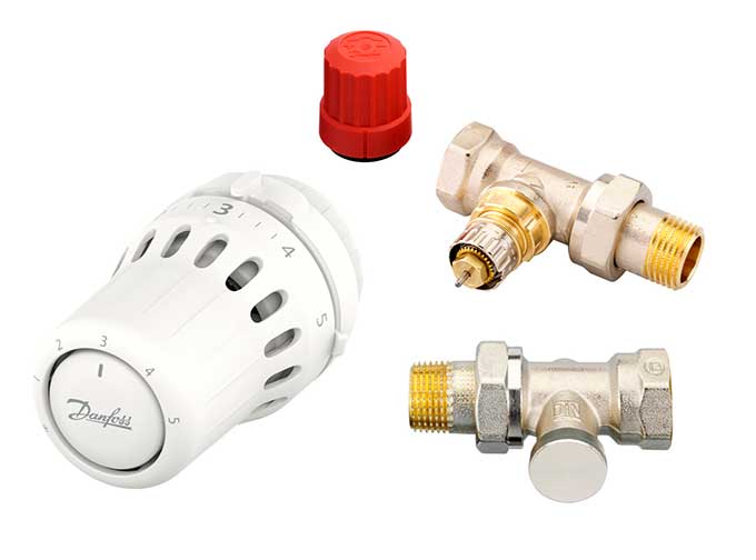 - Термостаты Danfoss — механические и электронные устройства для регулировки температуры в каждой комнате отдельно. Используются вместе с радиаторной арматуры так и с теплыми полами.