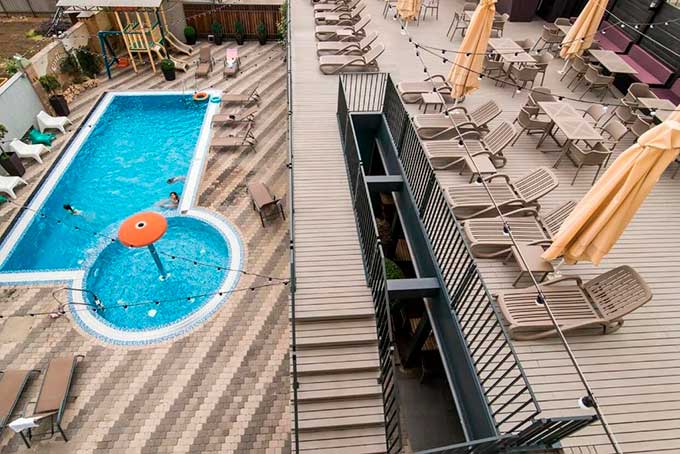 Кроме того, на территории комплекса функционирует детская игровая площадка, где малыши смогут весело провести время, пока родители наслаждаются тишиной и покоем.